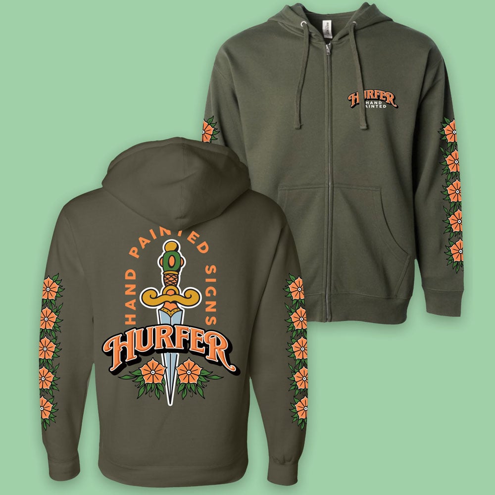Dagger ZIp Hooded Sweatshirt- Olive