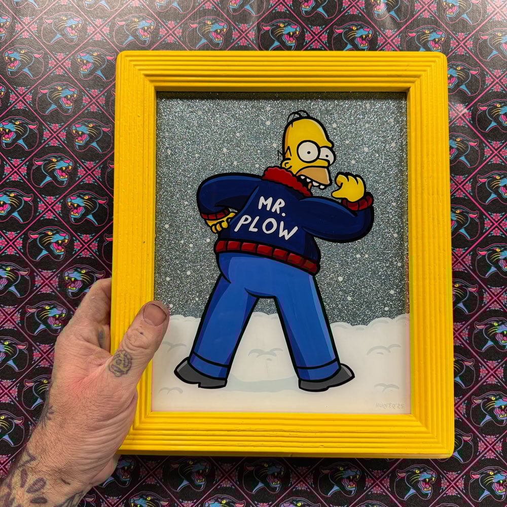 Painted on glass w/ enamel paint & glitter. framed in a repurposed vintage wood frame.